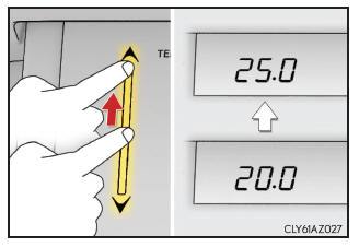 Zum Ändern der Temperatureinstellung, berühren Sie den Sensor mit Ihrem Finger und schieben Sie den Finger nach oben oder nach unten.
