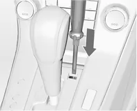 3. Schraubendreher so weit wie möglich in die Öffnung einführen und den Wählhebel aus der Stellung P bewegen. Wenn P wieder eingelegt wird, wird der Wählhebel wieder in dieser Stellung gesperrt.