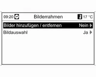 Über die Funktion "Digitaler Bilderrahmen" (nur Navi 600 / Navi 900) können Sie sich Ihre Lieblingsbilder (bzw. -fotos) nacheinander auf dem Display des Infotainment-Systems anzeigen lassen.