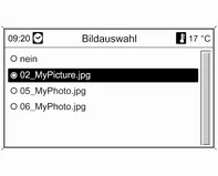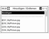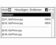 Wählen Sie maximal 10 Bilder aus, die in den Speicher des Infotainment- Systems geladen (eingefügt) werden oder darin gespeichert bleiben sollen.