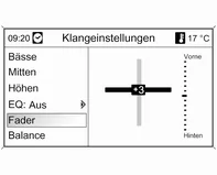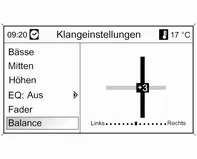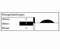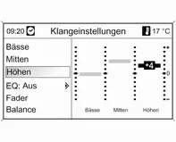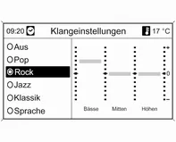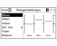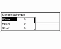 Im Klangeinstellungsmenü kann die Klangcharakteristik für jeden Radio- Wellenbereich und jede Audio- Player-Quelle separat eingestellt werden.