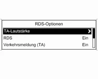Radioeinstellungen, RDS-Optionen und TA-Lautstärke wählen.
