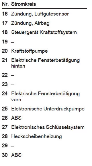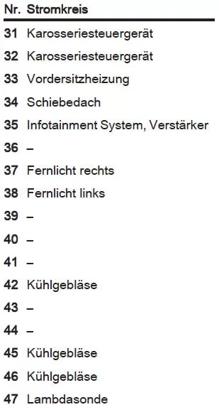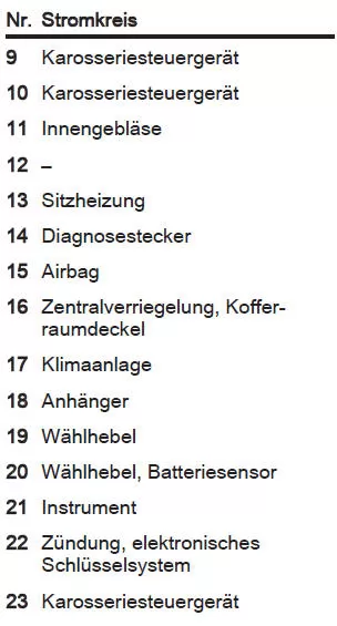 Ersatz entsprechend der Beschriftung auf der defekten Sicherung durchführen.