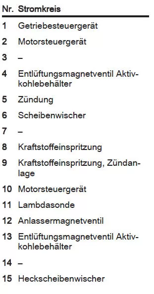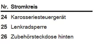 Einige Funktionen können durch mehrere Sicherungen abgesichert sein.
