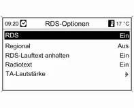 Falls RDS und der Empfang eines RDS-Senders aktiviert sind, werden Informationen