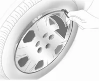 Radabdeckung mit dem Haken abziehen. Wagenwerkzeug.