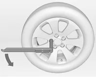 Radschraubenschlüssel herausklappen und sicherstellen, dass er gut sitzt. Jede Radmutter um eine halbe Drehung lösen.