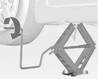 Kurbelstange anbringen und den korrekt ausgerichteten Wagenheber hochkurbeln, bis das Rad vom Boden abhebt.