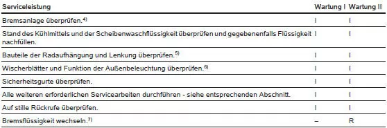 Service und Wartung. Empfohlene Flüssigkeiten, Schmierstoffe und Teile