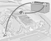 1. Motor des Starthilfe gebenden Fahrzeugs starten.