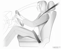Die Rückenlehnenneigung so ausrichten, dass das Lenkrad mit leicht angewinkelten Armen gut erreicht wird. Beim Drehen des Lenkrads muss der Kontakt zwischen Rückenlehne und Schultern erhalten bleiben. Die Rückenlehne darf nicht zu weit nach hinten geneigt sein.