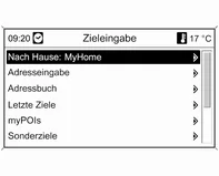 ■ myPOIs: Auswahl einer im Speicher "myPOIs" gespeicherten Adresse. Siehe "Auswahl einer im Speicher 'myPOIs' gespeicherten Adresse" unten.