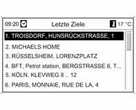 ■ Letzte Ziele: Auswahl aus einer Liste der zuletzt gewählten Ziele.