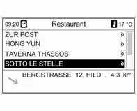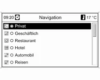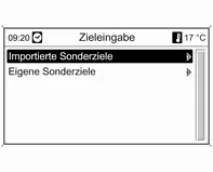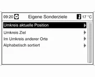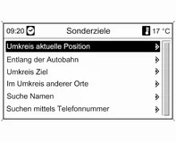 Auswahl von Sonderzielen in der Nähe der aktuellen Fahrzeugposition.
