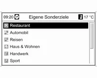Ein Menü mit den gegenwärtig verfügbaren Sonderziel-Kategorien wird angezeigt.