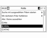 Die Anzahl der Tankstellen kann durch Markieren mindestens einer Tankstellenmarke bzw. -kette verringert werden.