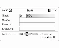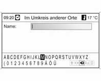 Mit dem MENU-Knopf nacheinander die Buchstaben der gewünschten Stadt markieren und bestätigen. Bei diesem Vorgang werden automatisch Buchstaben gesperrt, die in Namen der Stadt nicht als nächstes kommen können.