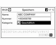 Das Menü Speichern wird angezeigt, siehe "Speichern einer Adresse im Adressbuch oder im Speicher myPOIs" unten.
