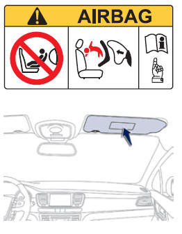 Der Warnhinweis mit dieser Vorschrift befindet sich auf jeder Seite der Beifahrer-Sonnenblende.