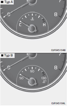 Dieses Messgerät zeigt die Temperatur des Motorkühlmittels an, wenn sich der Zündschalter oder der Engine Start/ Stop-Knopf in der Position ON befindet.