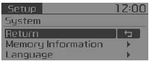 Kia Optima. Einrichtungsmodus (Typ A-3, Typ A-4, für Kolumbien- Modell). Verwenden der Systemtaste