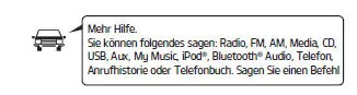 | Phone (Telefon) | Bietet Hilfe zu Befehlen in Bezug auf das Telefon. Sagen Sie nach diesem