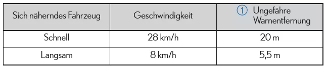 Um dem Fahrer eine einheitlichere Zeit zum Reagieren zu geben, kann der Summer bei schneller fahrenden Fahrzeugen eine Warnung ausgeben, wenn diese weiter entfernt sind.