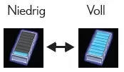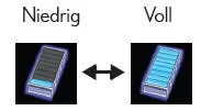 Ein Symbol steht für 30 Wh. Bis zu 5 Symbole werden angezeigt.