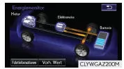 Über die „MENU“-Taste im Navigationssystem oder Display-Audiosystem lässt sich der Energiemonitor unter dem Punkt „Auto“ auswählen.