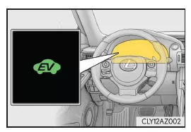 Die EV-Anzeige leuchtet auf, wenn das Fahrzeug nur mit dem Elektromotor (Traktionsmotor)