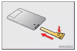 Verstauen Sie den mechanischen Schlüssel nach seiner Verwendung im elektronischen Schlüssel. Befördern Sie den mechanischen Schlüssel zusammen mit dem elektronischen Schlüssel. Wenn die Batterie des elektronischen Schlüssels entladen ist oder die Einstiegsfunktion nicht einwandfrei funktioniert, benötigen Sie den mechanischen Schlüssel.