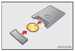 Wenn der Schlüssel ins Wasser fällt oder wenn Trinkwasser usw. über dem Schlüssel verschüttet wird, entfernen Sie sofort die Batterieabdeckung und wischen Sie Batterie und Pole ab. (Um die Batterieabdeckung zu entfernen, fassen Sie sie leicht und ziehen Sie). Ist die Batterie korrodiert, lassen Sie die Batterie umgehend von einem Lexus-Vertragshändler bzw. einer Vertragswerkstatt oder einem anderen vorschriftsmäßig qualifizierten und ausgerüsteten Fachbetrieb austauschen.