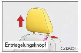 Ziehen Sie die Kopfstütze nach oben, während Sie den Entriegelungsknopf gedrückt halten.