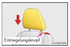 Drücken Sie die Kopfstütze nach unten, während Sie den Entriegelungsknopf gedrückt halten.