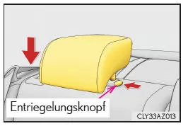 Halten Sie beim Absenken der Kopfstütze den Entriegelungsknopf gedrückt.