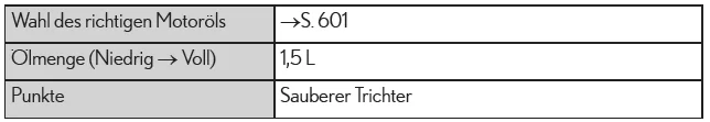 Die Motoröl-Wartungsdaten sollten zurückgesetzt werden. Führen Sie folgende Verfahren aus: