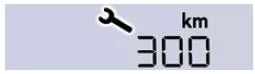 Beim Einschalten der Zündung leuchtet der Schraubenschlüssel als Wartungssymbol für die Dauer von 5 Sekunden. In der Anzeige des Kilometerzählers erscheint die bis zur nächstfälligen Wartung verbleibende Kilometerzahl.