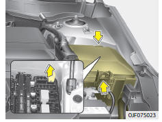 Verwenden Sie das Ausbauwerkzeug aus dem Hauptsicherungskasten im Motorraum.