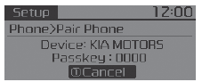 Gerätename und Passcode werden bis zu 3 Minuten lang auf dem Bildschirm angezeigt. Der Mobiltelefon- Koppelvorgang wird automatisch abgebrochen, wenn die Kopplung nicht innerhalb von 3 Minuten abgeschlossen wurde.