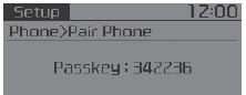 Geben Sie den Passcode "0000" ein, um Ihr Bluetooth Wireless Technology-Gerät mit dem Audiosystem des Fahrzeugs zu koppeln.