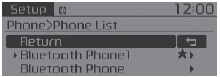 Wählen Sie [Phone] (Telefon).Wenn Bluetooth Wireless Technology eingeschaltet ist, versucht das System automatisch, eine Verbindung zum zuletzt verbundenen Bluetooth Wireless Technology-Mobiltelefon herzustellen.