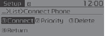 Die Namen von bis zu 5 gekoppelten Mobiltelefonen werden angezeigt.