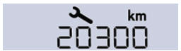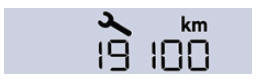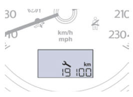 Beim Einschalten der Zündung leuchtet der Schraubenschlüssel als Wartungssymbol für die Dauer von 5 Sekunden. In der Anzeige des Kilometerzählers erscheint die bis zur nächstfälligen Wartung verbleibende Kilometerzahl.
